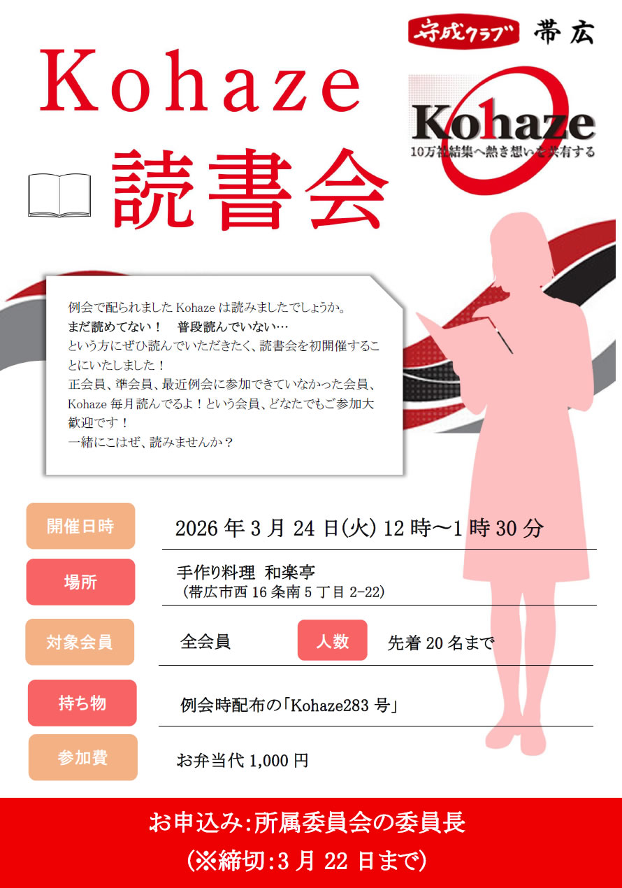 例会で配られましたKohazeは読みましたでしょうか。